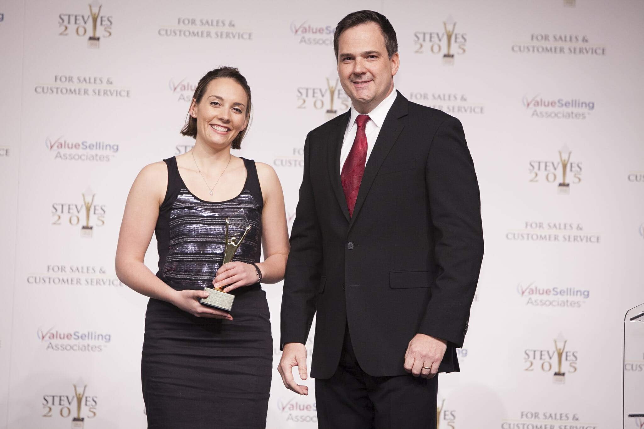 Nothing makes us happier at Buildium than when customers tells us how knowledgeable, helpful, and attentive our Customer Care (or “C-Squared”) team is. One thing comes close, though: recognition for our service and support from the business community. On February 27, 2015, Buildium’s C-Squared team won two prizes for customer service at the 9th Annual Stevie Awards banquet held at The Bellagio in Las Vegas. Customer Care Agent Jeana Pondelli grabbed a Gold Stevie, the top prize in the “Young Customer Service Professional of the Year – Computer Software and Services” category. Also taking home hardware was Buildium’s C-Squared department, which won a Bronze in the “Contact Center of the Year (Up to 100 Seats) – Technology Industries” category. Jeana’s Gold was her first Stevie and Buildium’s first Gold Stevie. C-Squared’s 2015 Bronze award comes on the heels of the Silver and Bronze Stevies it earned for customer service excellence in 2014. “Jeana was a top performer and customer favorite almost immediately after joining C-Squared,” said Ned Prickett, customer care operations manager. “In her first year here, we joked that if we could clone her six times, the rest of the team would be out of a job.”